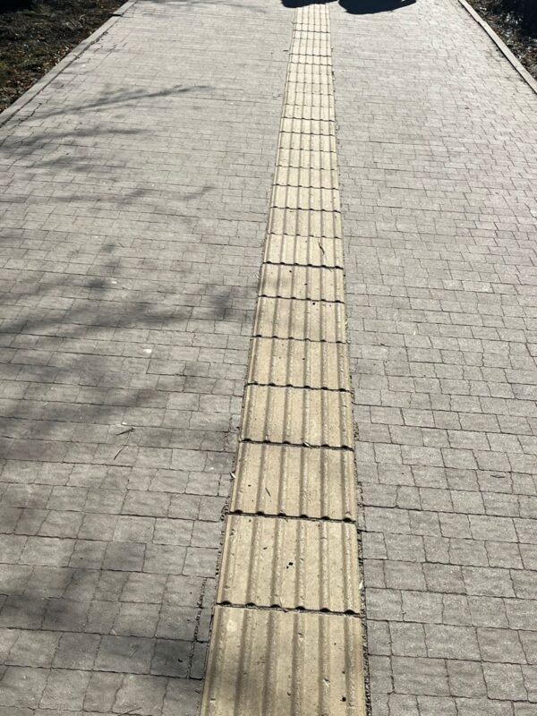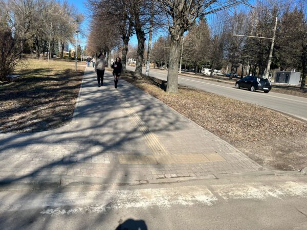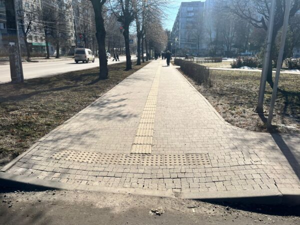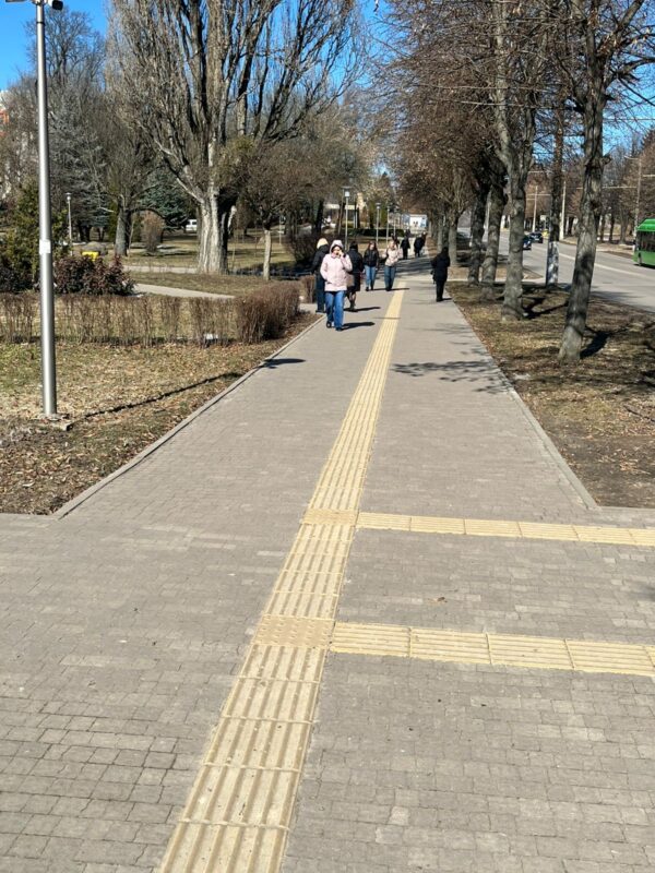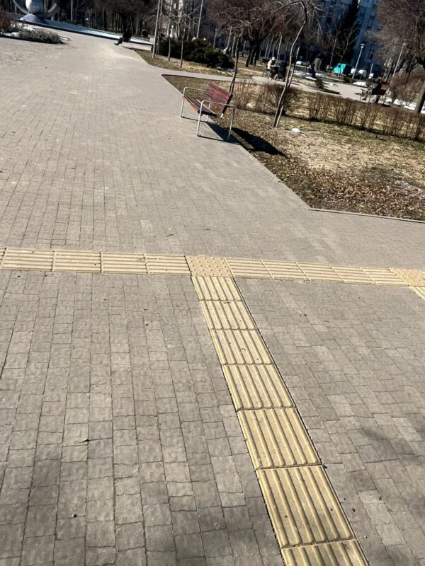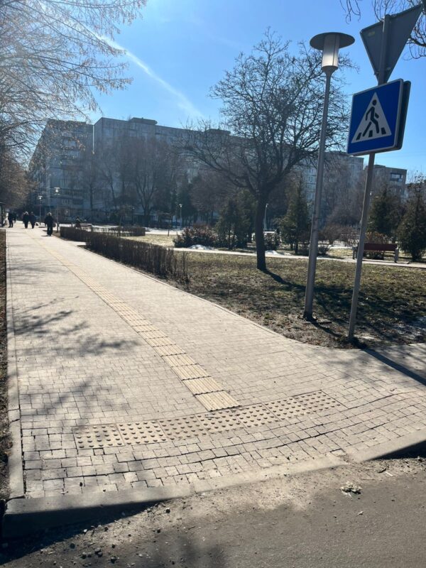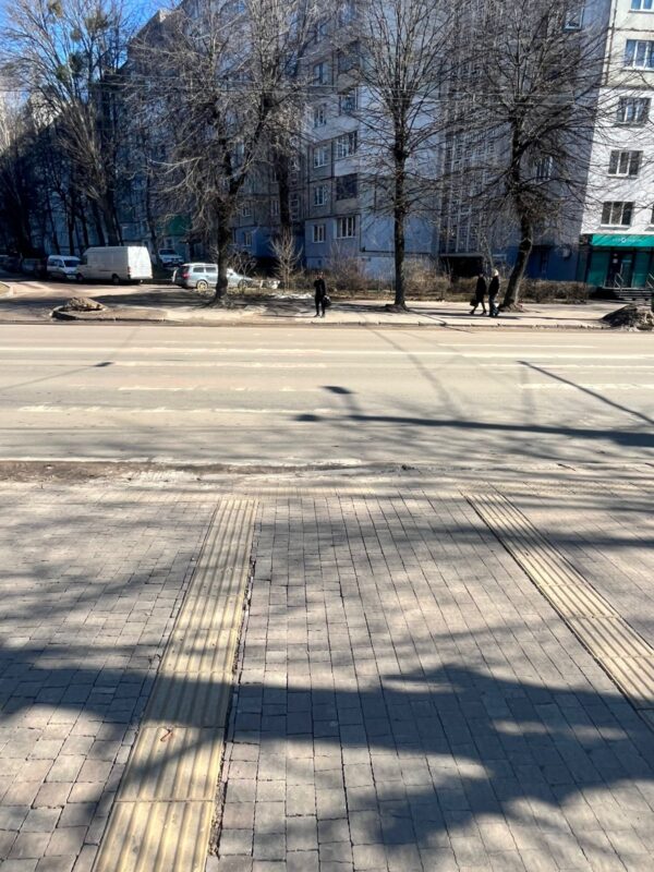 - Встановлення засобів тактильної навігації та направляючих елементів, що дозволяють людям із порушеннями зору безпечно орієнтуватися на дорозі;