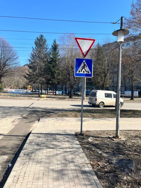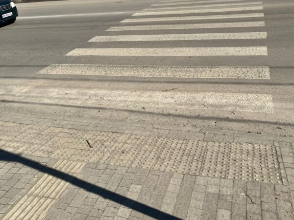 - Нанесення контрастної дорожньої розмітки на пішохідних переходах, в місцях підвищеної інтенсивності руху та на транзитних магістралях;